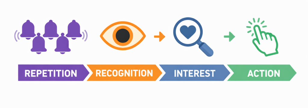The repetition shapes recognition, recognition turn into interest, interest turn into action.