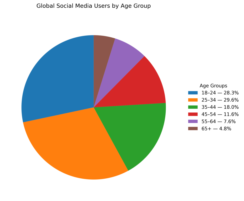 Reports like this one place the largest share of active users between the ages of 18 and 34, with usage gradually declining in older groups, although platforms like Facebook and YouTube maintain a strong presence well beyond that range.