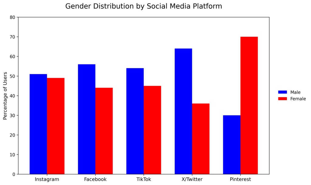 Age explains part of the story: gender is another important factor. As you can see below, Statista’s data suggests that some platforms lean more toward male audiences, while others attract a stronger female user base.